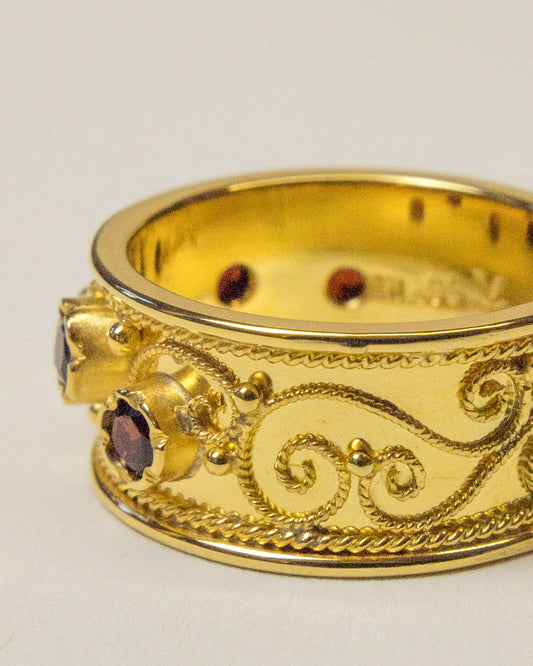 Brautring mit Granat Edelsteinen